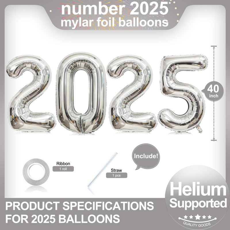 - Package Included: Giant 40 inch Silver 2025 Balloons,1 Inflatable Straw,1 Ribbon.2025 Happy New Year Silver Balloons for New Year Eve Party Supplies 2025, New Years Decorations 2025, Christmas, Graduations Decorations