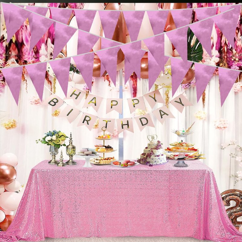 - 【Pink Pennant Bunting Set】: The total length of the Pink Triangle banner is 65.6 feet, divided into 2 strips, each 32.8 feet long. 40Flag, Each Pennant Banner 40Flag Size: 7.87''/20cm width x 11.8''/30cm height for birthday decorations many occasions, and so on