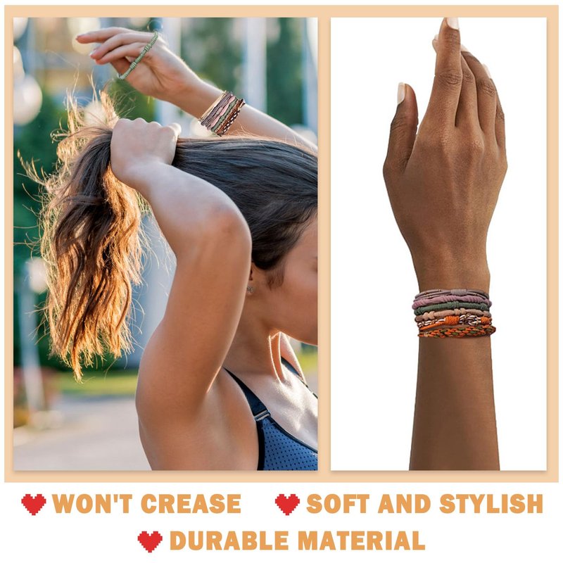 - 【Hair Ties Bracelets】Hair tie is suitable for all hair types, whether your hair is thin, thick, curly or straight, it can perfectly fix the hairstyle, and you can also wear multiple hair tie bracelets on top of each other to add a unique charm of hand decoration . Suitable for all girls and women.
