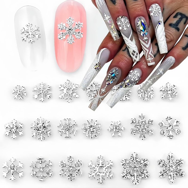 - -Perfect Gift: Snowflake nail jewelry are not only suitable for everyday manicure decoration, but can also make you look more sophisticated at Christmas and various parties, The best gift for your female friends, your mom, your wife.