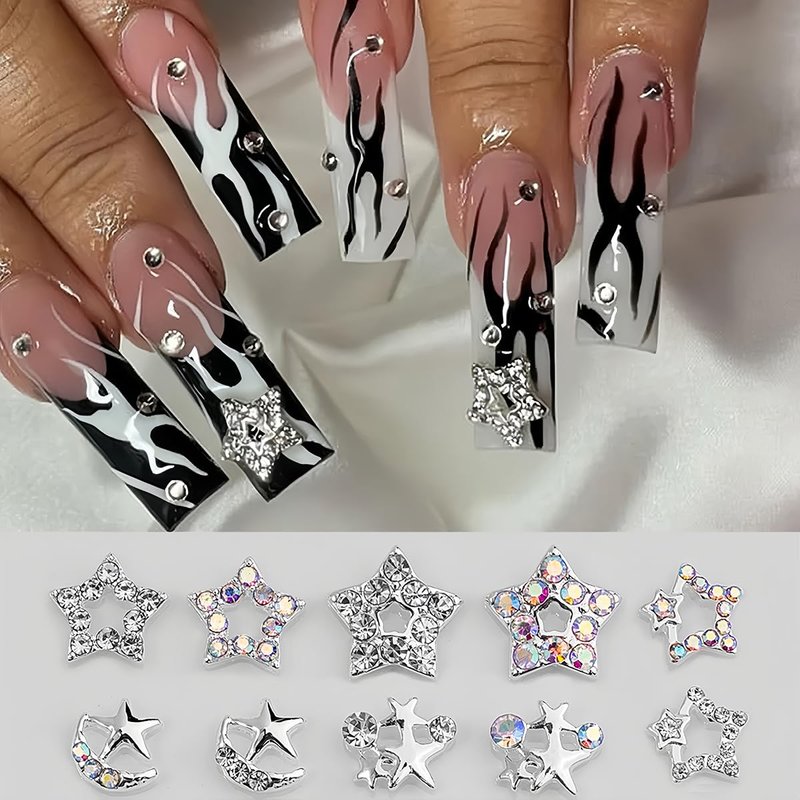 - -Easy to Use: First, you can clean the nail surface and apply nail glue, then put these star nail rhinestones on the nail and stick them to the nail, which is simple and time-saving. You will get a beautiful nail design.