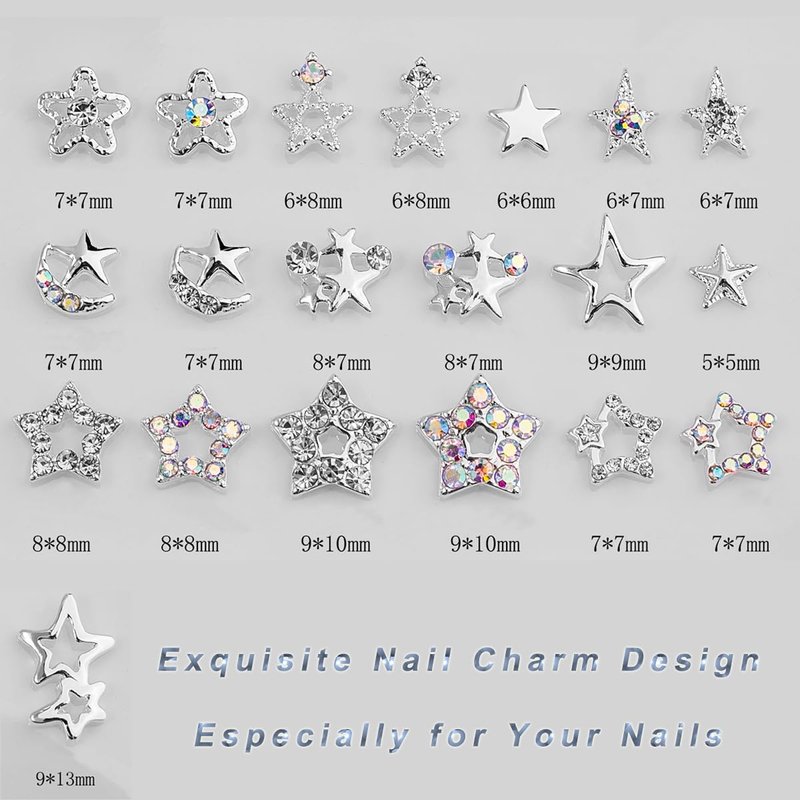 - -Exquisite Design: These star nail charms are designed with high-quality materials. The fashion shaped shape shows a noble temperament. To make your nails looks dazzling and gorgeous.