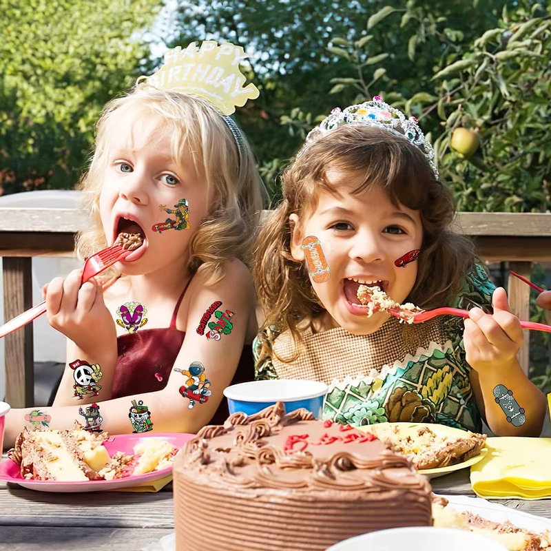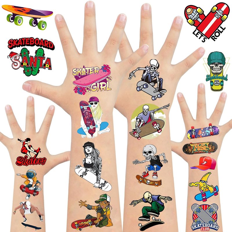 - Widely Used - Skateboarding tattoos for girls boys are suitable for most events, such as rock parties, music carnivals, birthday parties, music festivals, concerts, 80s 90s retro themed party etc.,to increase the atmosphere. They also can be presents for boys girls on Birthday, Thanks Giving Day, Christmas, Halloween party favors goodie bags fillers exchange gifts school prizes game rewards etc