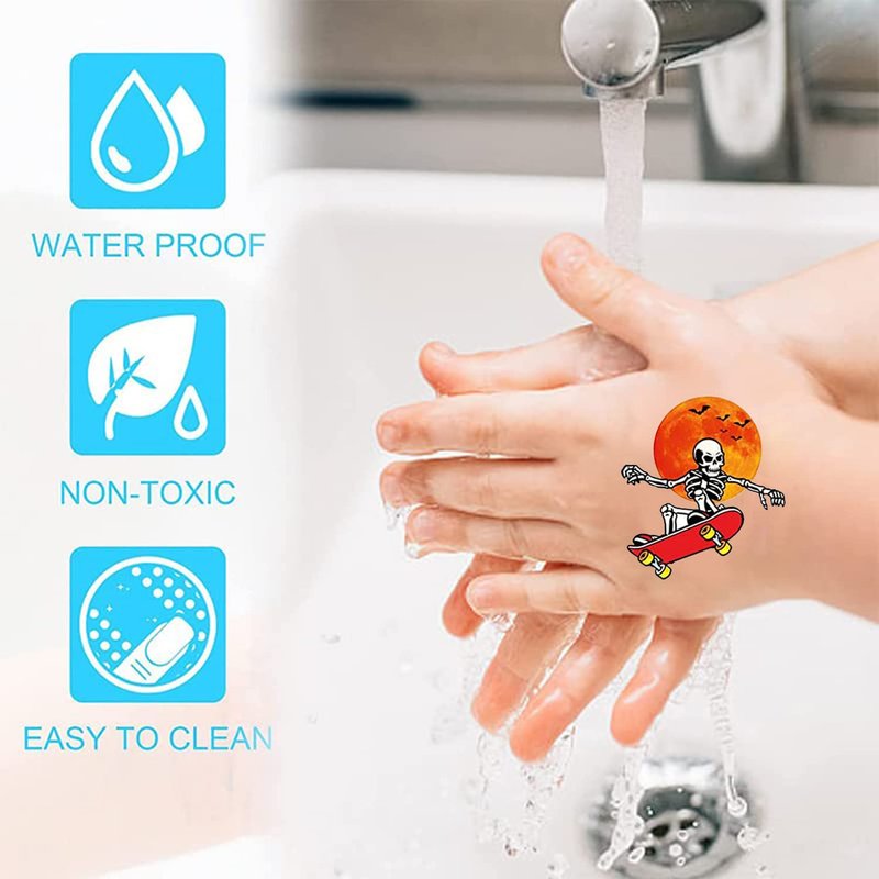 - Classic Attractive Patterns - Each sheet features a variety of skateboarding-themed characters that can decorate your body, and show your preference and attitude easily. Whether it's a birthday party or a fun-filled stay-at-home activity, these tattoos are sure to bring smiles and joy to everyone