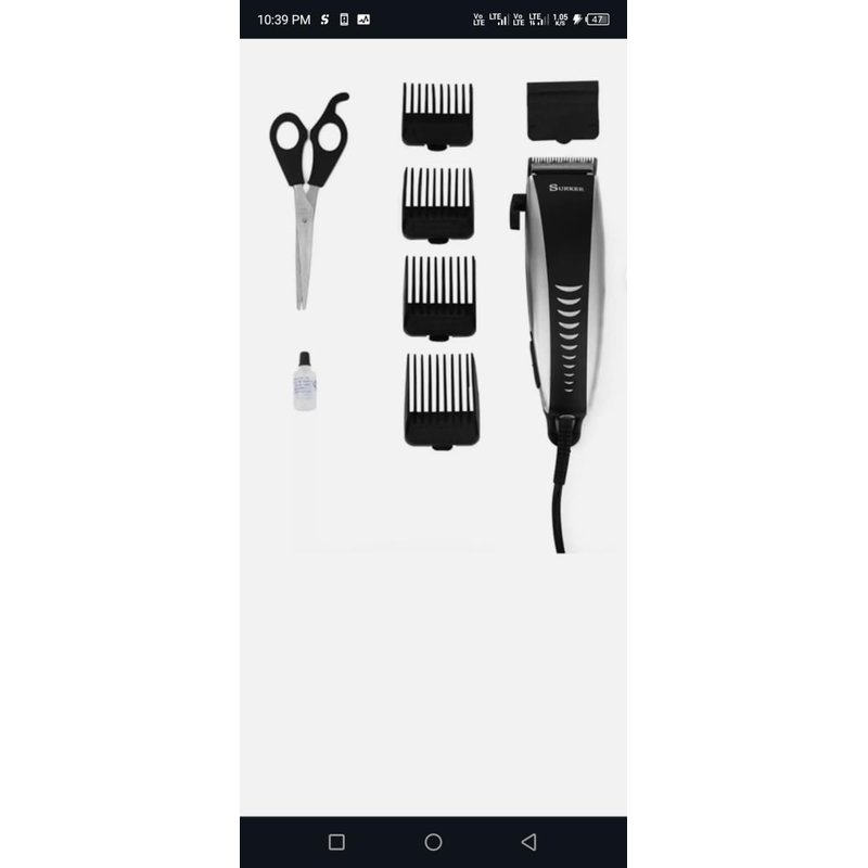 Product: Hair ClipperColor: As The PicturePacking Dimensions: 51.5*25.5*56 cm. Features:Complete set for the entire family110 50Hz 12WErgonomic body design for comfort usePowerful AC motor with adjustable blade-control leverAccessories options: 4 size attachment comb: 3mm; 6mm; 9mm; 12mm, Adjustable blade, Barber comb, Scissors, Cleaning brush, and Oil. Package List:Four attachment combsScissorsBarber CombCleaning brushBlade guardClipper oil