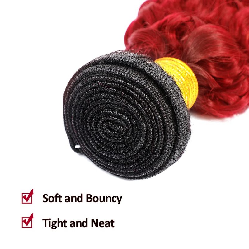 - 【Ombre Bundle Material】: Unprocessed Brazilian Virgin Human Hair, 8A Red curly Human Hair Weave, Natural Health.
