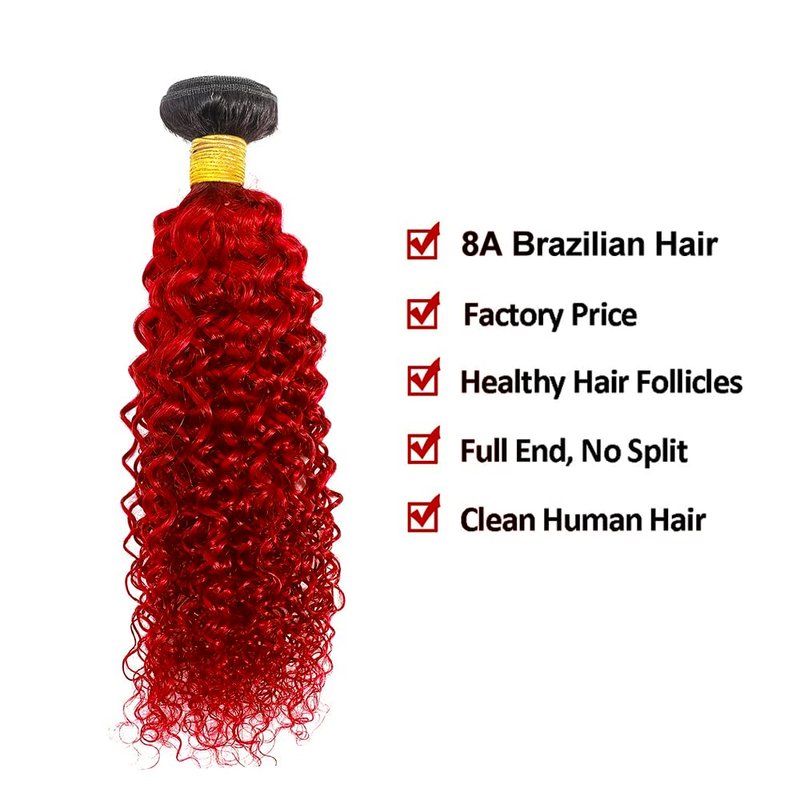 22 24 26 inch Red Bundles Human Hair 1b/Red Kinky Curly Human Hair Bundles Ombre Red Curly Wave Bundles 8A Brazilian Remy Red Human Hair Extensions