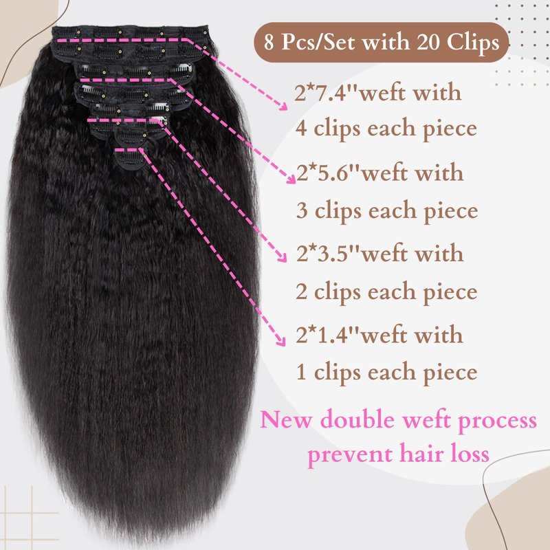 - Easy to Wear Clip in Hair: Say goodbye to complicated installation processes! Kinky straight clip ins hair extensions are glueless and hassle-free to install. Simply clip them in for an instant transformation. When it's time to remove them, just unclip and go!