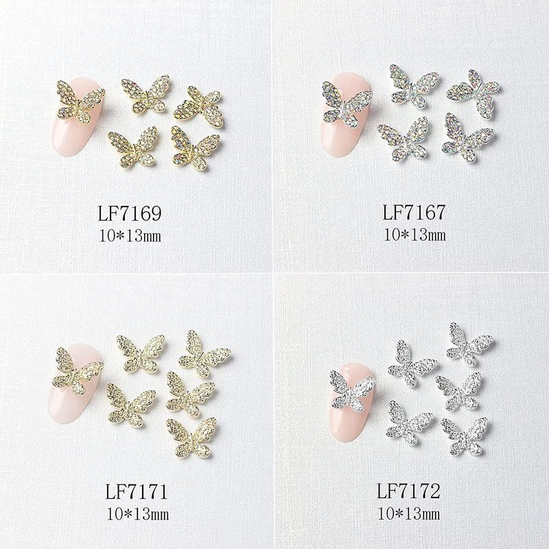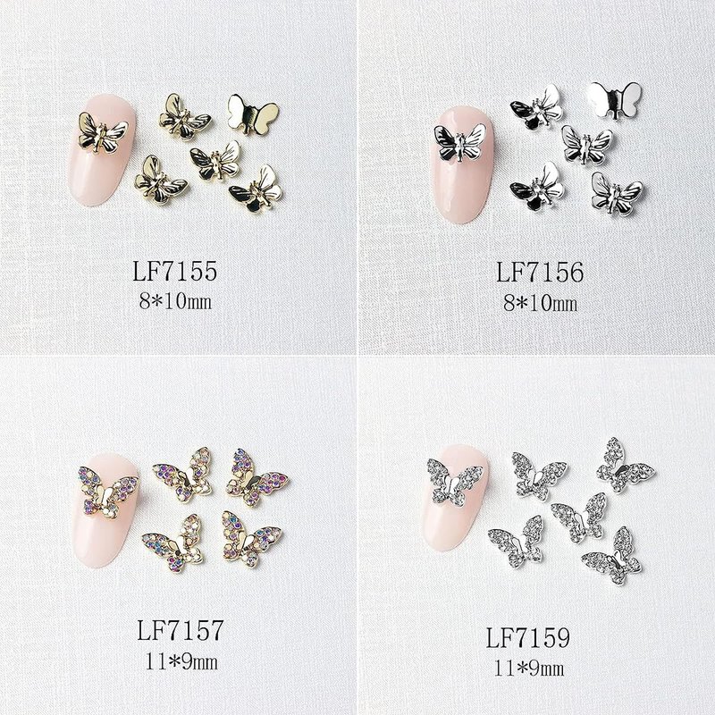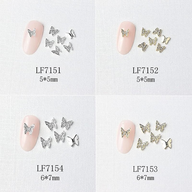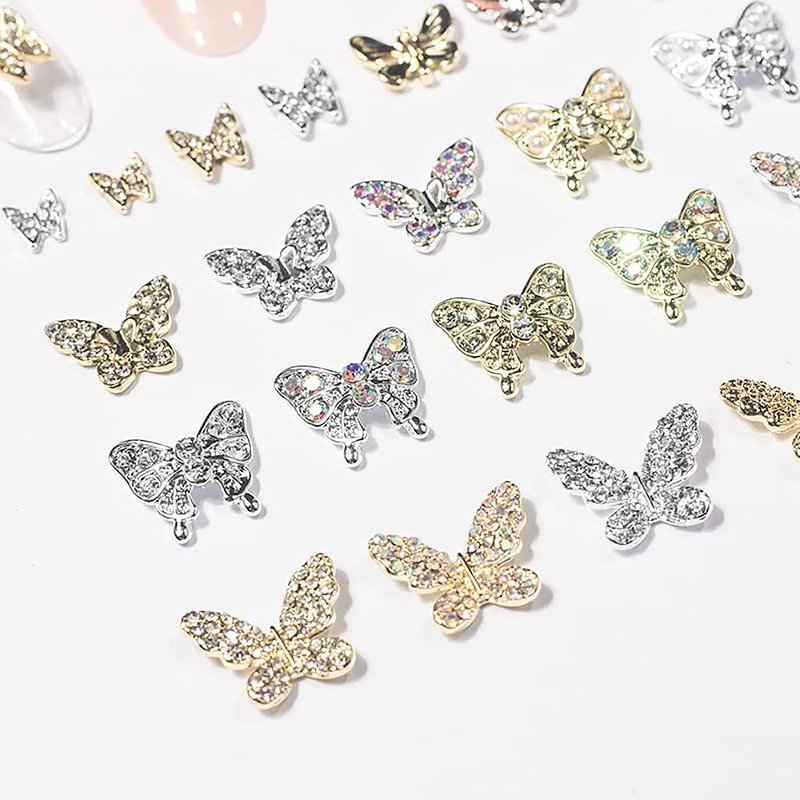 - These gold and silver butterfly nail decorations are metallic materials topped with rhinestones, pearls, crystals, etc. that make them shine so brightly in the light, which adds a beautiful and elegant touch to the nails.