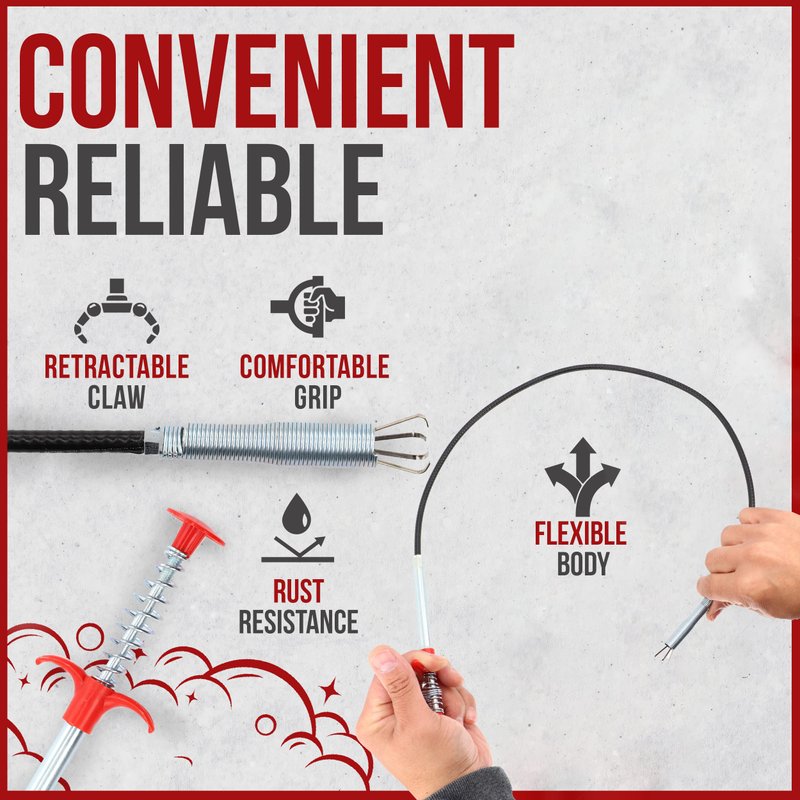 About Ram-Pro Flexible Pick-up Reacher and Grabber & Hair Drain Unblocker & Clog Remover Drain Relief Tool for Drain Cleaning.