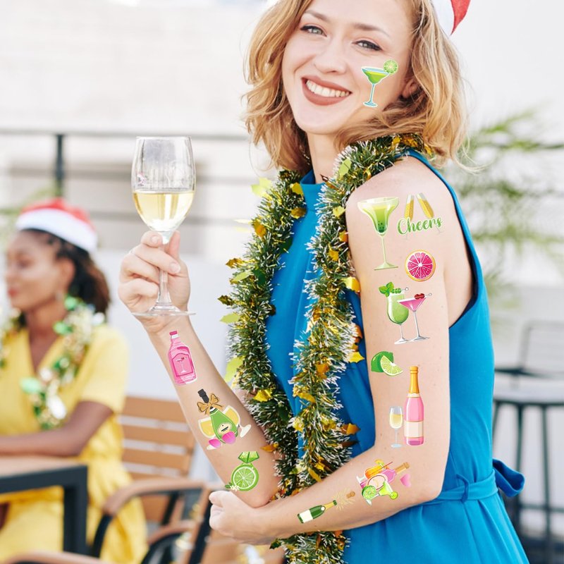- Unique Design: Featuring elements like martinis, ice, cocktail glasses, and lemons, these tattoos add a vibrant touch to your party. The eye catching designs will impress your guests and enhance the festive atmosphere