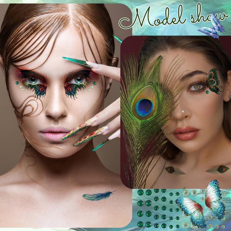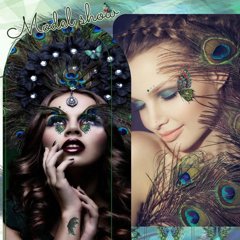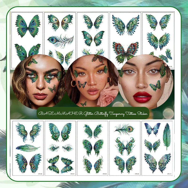 - Design: These glitter peacock butterflies temporary tattoos come in green, blue, purple, multiple color and patterns options, vibrant colors with long-lasting shine