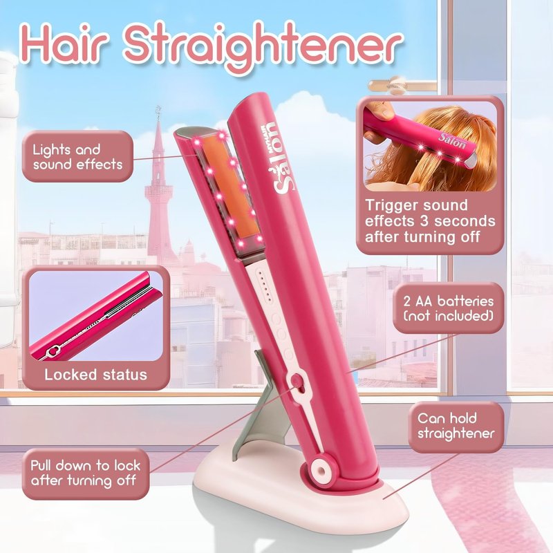 - Realistic Play Features: Designed to mimic the experience of a real hair salon, this pretend hair styling set for girls features realistic toy tools like a toy blow dryer and a toy barber set. The realistic sound and feel provide an immersive salon experience, helping young girls enhance their pretend hair styling skills and share the fun with friends