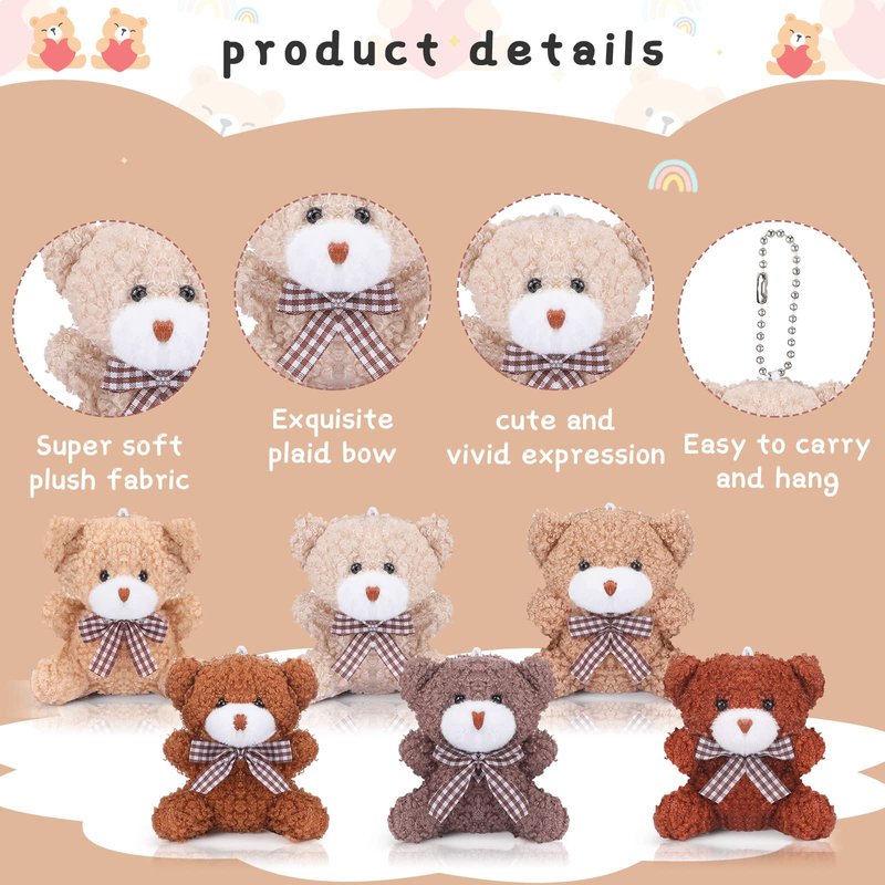- Wide Uses: in addition to being applied as backpack keychain pendants, these stuffed animals and bears can also be given as gifts to relatives and friends, as classroom rewards to students, or applied as bouquet decorations, flower basket decorations and holiday decorations to add a festive atmosphere, as well as a little one's friend to be held in the hand and put on the pillow to accompany the little one to sleep