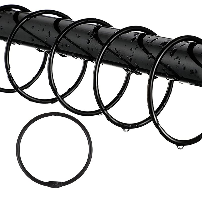 - 【Loop Closure Design】Simple snap closure makes black shower rings installation easy and fast. Without using too much force when closing, its clasp closure tightly enough to keep the shower curtain on the shower rod without falling off.