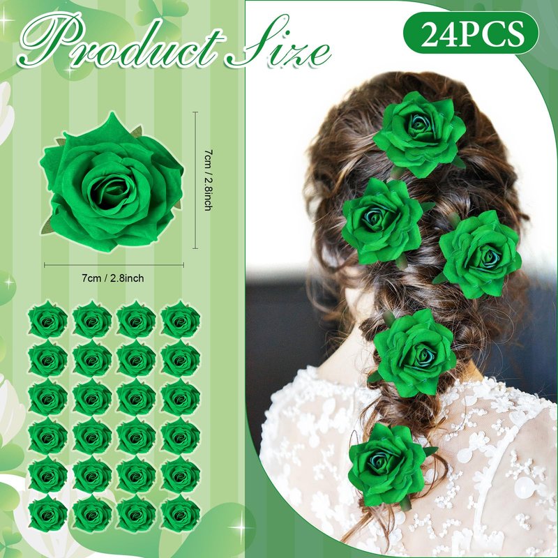- Enough to Decorate: you will receive 24 pieces of green rose hair clips, which can also function as brooches, enough for you to use and replace, meeting your daily decoration needs; You can also share with others