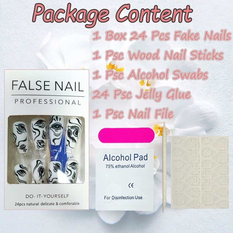 - 【Package Contents】24 Pcs Horror Eye False Nails +1 Nail File + 24 Pcs Jelly Glue Stickers+1 Alcohol Cotton+1 Wooden Stick.(Durability of jelly glue is not as good as liquid glue, but it makes fake nails reusable. Please use suitable glue according to different scenes)
