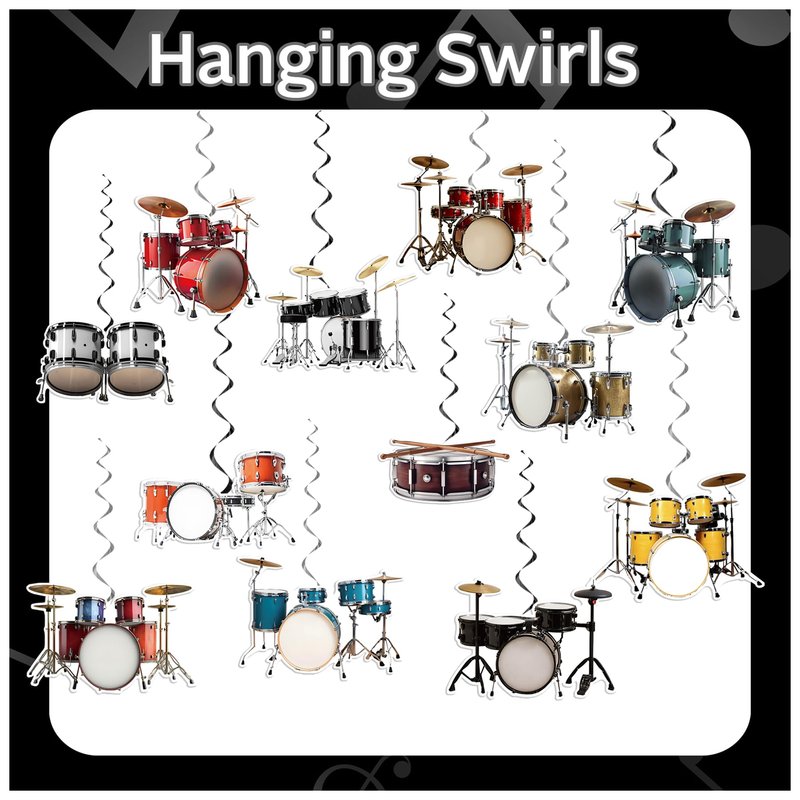24 PCS Drum Hanging Swirl Decorations Drum Ceiling Streamers Hanging Decorations Drum Party Decorations for Drum Birthday Party Supplies Drummers Birthday Party