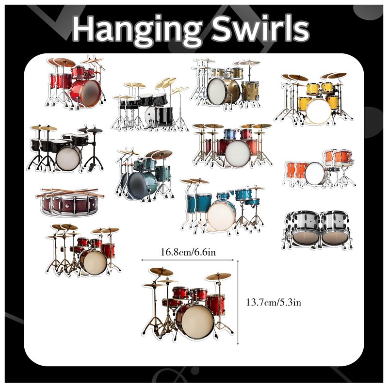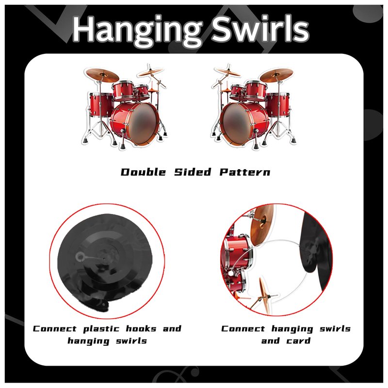 - Drum Hanging Decorations: You will get 48 pcs hanging swirl decorations, including 24 pcs drum cards 12 different patterns and 24 pcs spirals. A sufficient quantity and cute design will bring more surprises to your party.