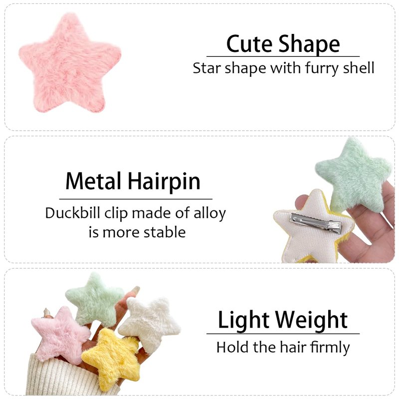 - 【Comfortable Plush Material】These fuzzy star hair clips are made of plush and metal, lightweight, not easy to rust, reusable and for long-lasting use.