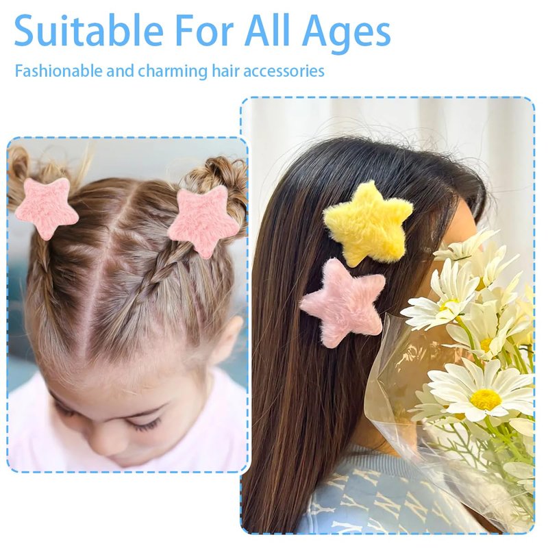 - 【Fluffy Star Hair Clips】These cute and trendy hair clips feature fluffy star elements.The fuzzy texture and warm touch make these hair clips not only stylish but also cozy.
