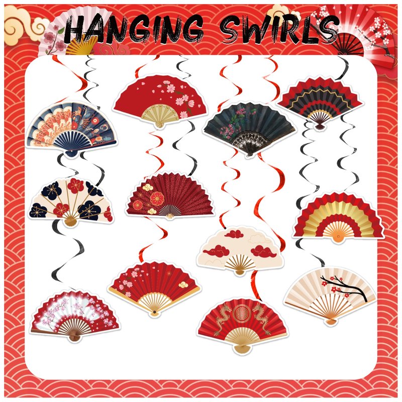 - Folding Fans Hanging Decorations: You will get 48 pcs hanging swirl decorations, including 24 pcs folding fans cards 12 different patterns and 24 pcs spirals. A sufficient quantity and perfect design will bring more surprises to your party.