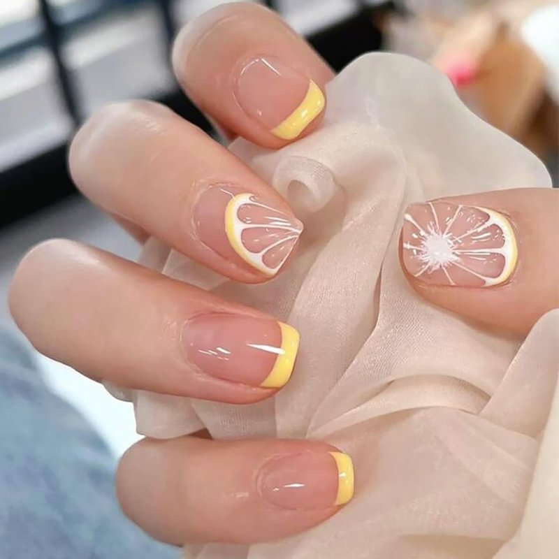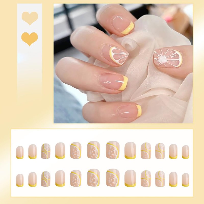 - Easy to Use: Lemon false nails with nails adhesive sticker can get your favorite manicure in just 5 minutes without waiting at the nail salon. Some simple steps allow you to get the same impressive professional effect at home. When removing the press on nails, soak the nails in water for about a minutes to remove them more easily.