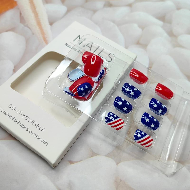 - 【Service Guarantee】 Strives to bring you the quality independence day stick on nails.Please feel free to contact with us if had any questions, we will try our best to solve your problem and satisfy you. Please email us if you received wrong item.