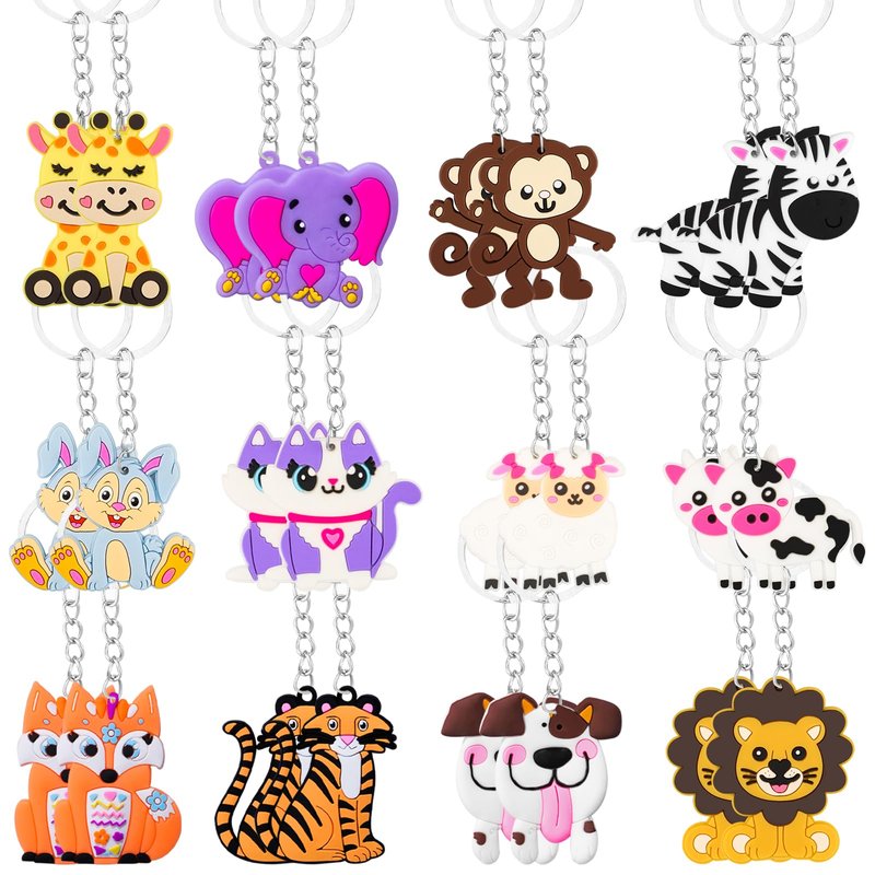 - Animal Keychain - 24pcs cute animals keychain pendant vary in 12 different patterns, funny cartoon animal styles will loved by kids. Best choice for party favors.