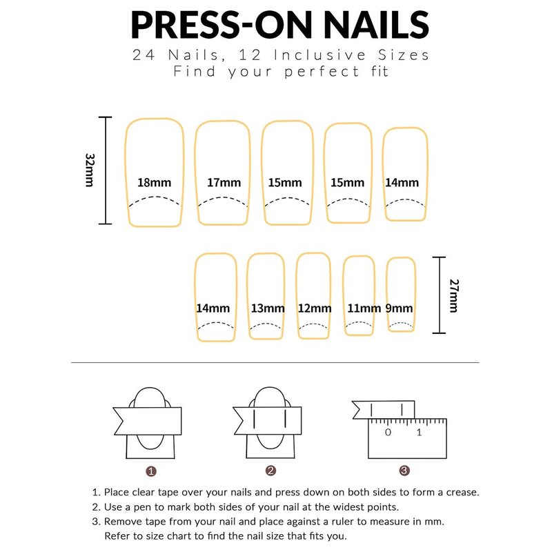 - Easy to Use: Instead of spend lots time and money at nail salon, you can change you nails style in 15 min anytime and anywhere.(The fake nails will stay longer if you clean your nails before use, and avoid water within the first hour of wearing)