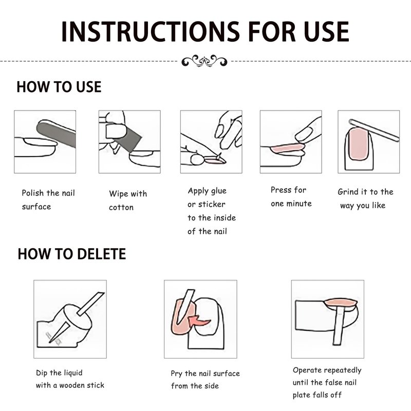 - 【 Usage】All you need to do is clean and trim your nails, stick the double-sided nail stickers we provide or apply your own prepared glue, and press the fake nails on the nails for 10 seconds to achieve the same effect as the nail salon.
