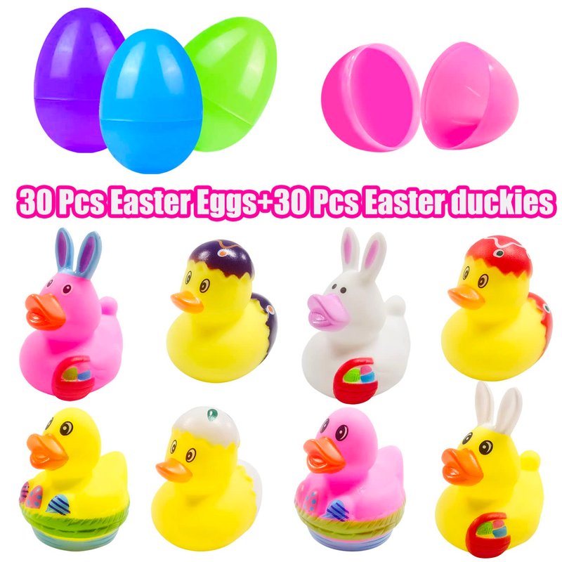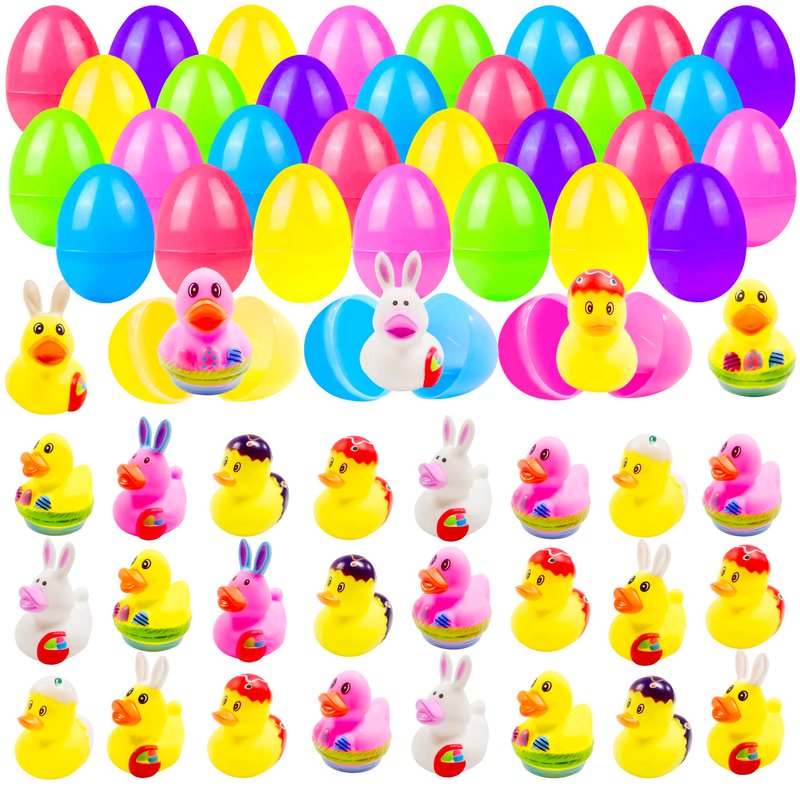- Super Value Rubber Duckies:Our Easter rubber ducks with 24 pcs Easter eggs in 8 different Easter themed styles ducks such as Bunny Duck,Egg Ducks,each measures 2.16 inches,total 30pcs