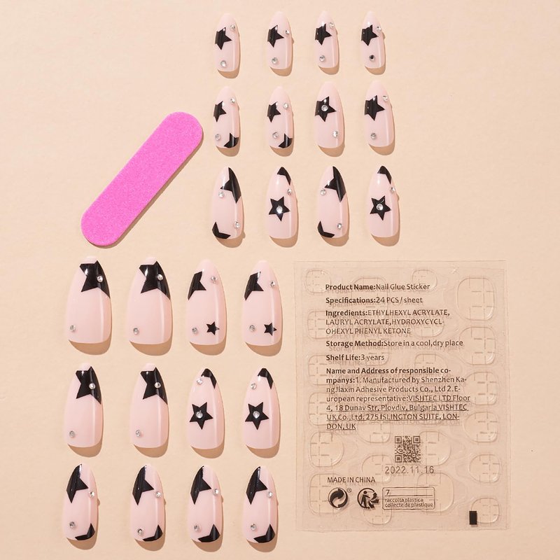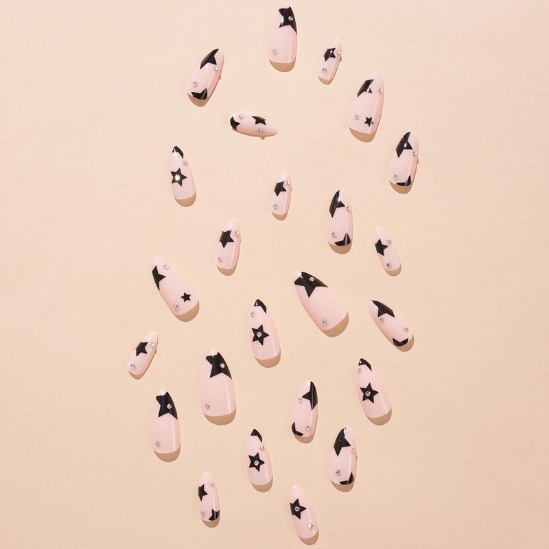 - šćEasy to UsećOur nail rhinestones are very glamour,and These fake nails with star design are easy to trim. It only takes 5-10 minutes to get your favorite holiday false nails. A few simple steps will make it easy for you to get the effect of doing a nail salon at home.