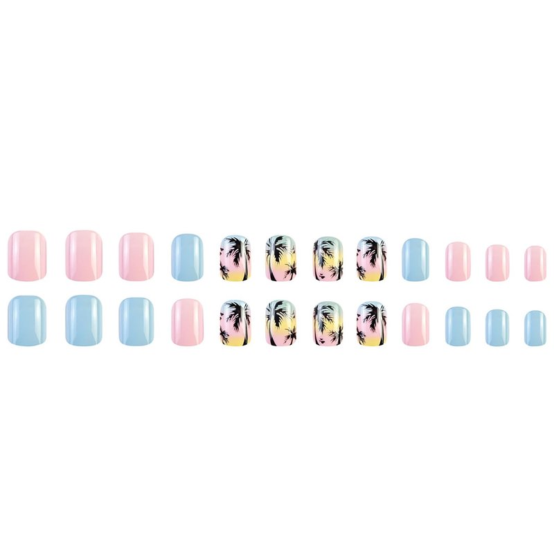 24 Pcs Short Square Press on Nails Colorful RIICFDD Fake Nails Summer Beach Style False Nails with Coconut Palm Designs Artificial Glossy Acrylic Nail Full Cover Glue on Nails for Women Girls
