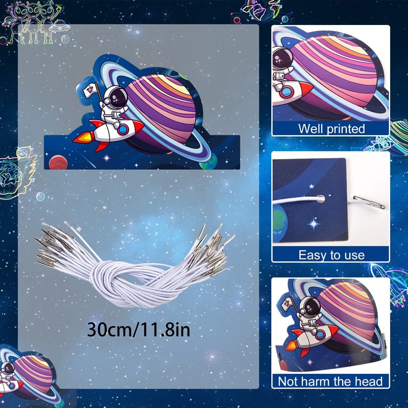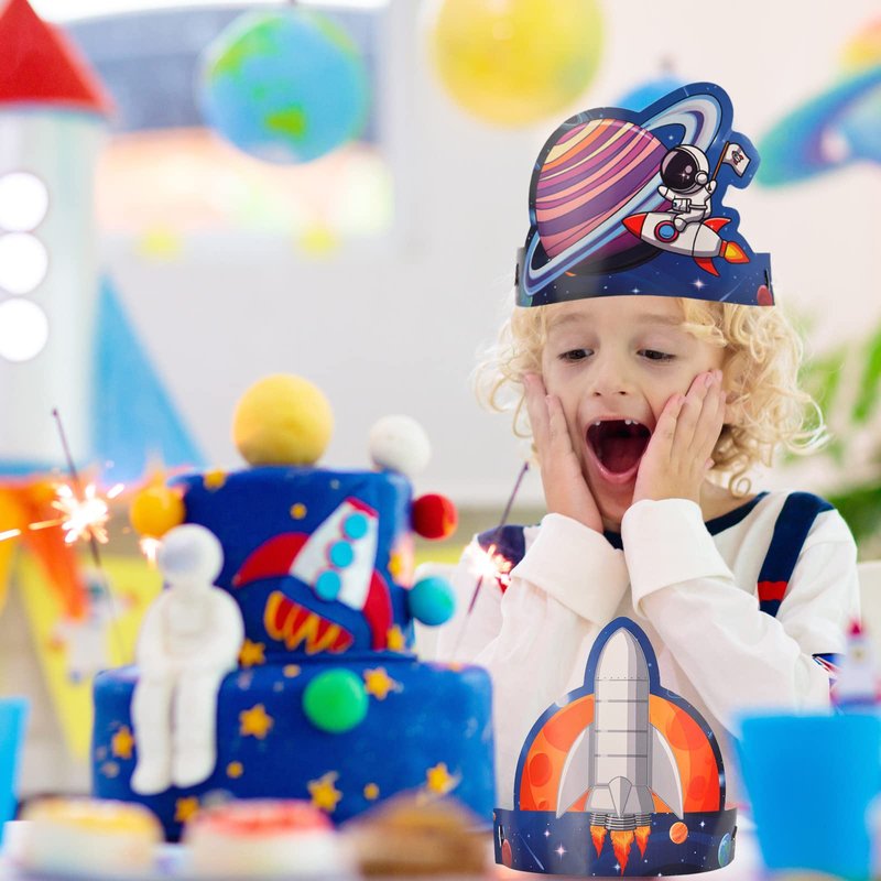 - 【Quality Material】The space birthday hats are made of quality card paper, which is sturdy and not easy to deform, lightweight and comfortable to wear. You're going to love it, and you can use them for a long time.