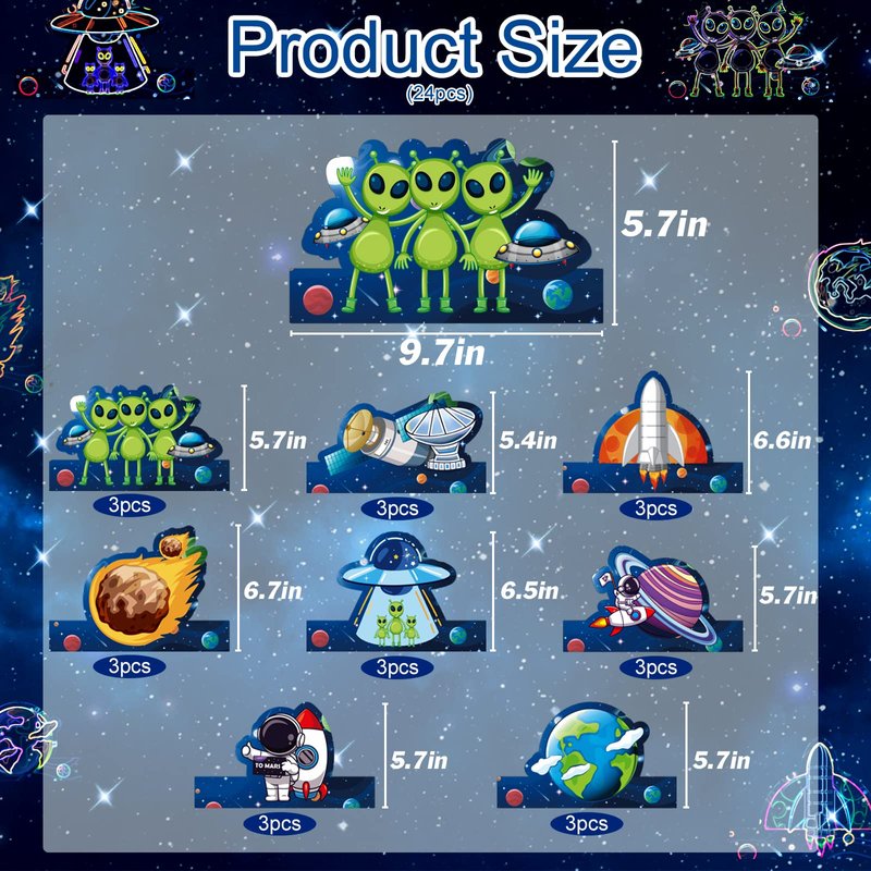 - 【Wide Application】These outer space paper hats can be applied in various occasions, such as astronaut themed parties, alien themed parties, fancy dress parties, space theme parties, birthday parties, baby shower, etc., to make you look more lovely, and also can be applied as photo props, allowing you to take many interesting and memorable photos.