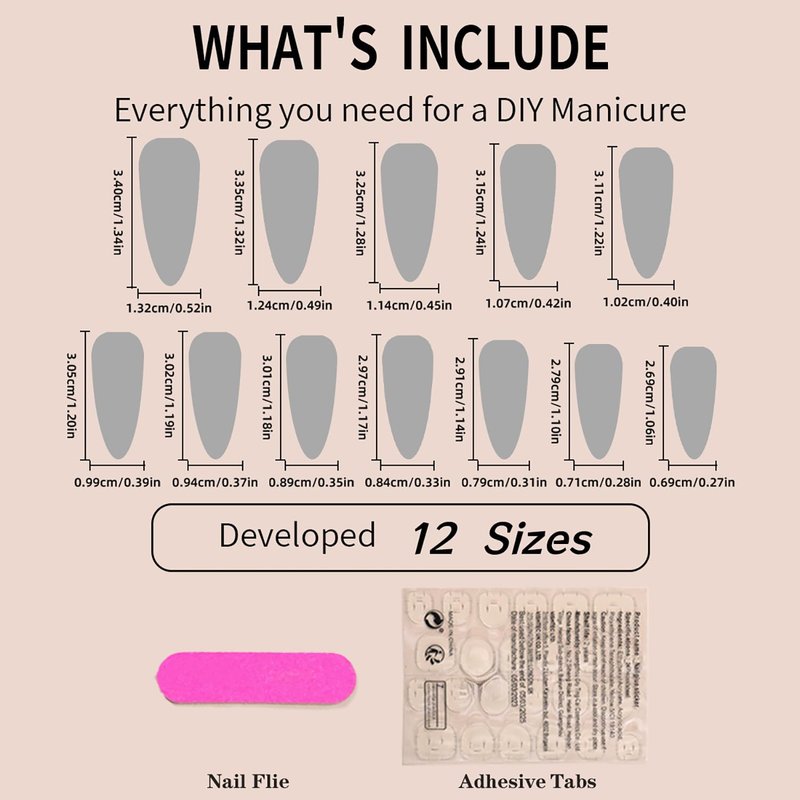 - 👻【 Usage】All you need to do is clean and trim your nails, stick the double-sided nail stickers we provide or apply your own prepared glue, and press the fake nails on the nails for 10 seconds to achieve the same effect as the nail salon.