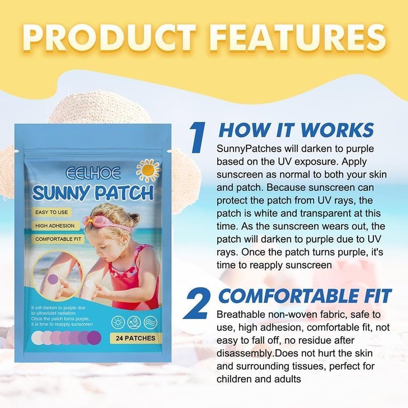 24 Pcs UV Stickers for Sunscreen, Waterproof UV Detection Stickers, Sun Cream Stickers to Reapply,UV Detection Reminder UV Patch for Kids Adults Waterproof Patches, Changes Color When Time To Reapply