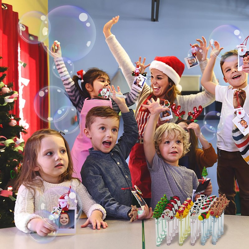 Christmas Party Supplies - Includes 24 Piece bubble wand for kids(Santa Claus, Elk, Bell, Snowman, Christmas Stockings, Christmas Tree),Great for Christmas party favors in the goodie bags. Kids of all ages love them, especially aged 3 to 10 years old.