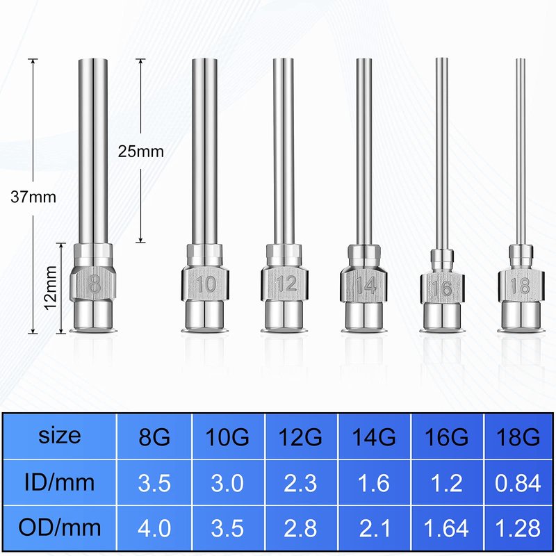 - Package contains: you will receive 24 pieces dispensing needles, including 8G, 10G, 12G, 14G, 16G, 18G in 6 different commonly applied sizes, 4 of each size, sufficient quantity to meet your needs