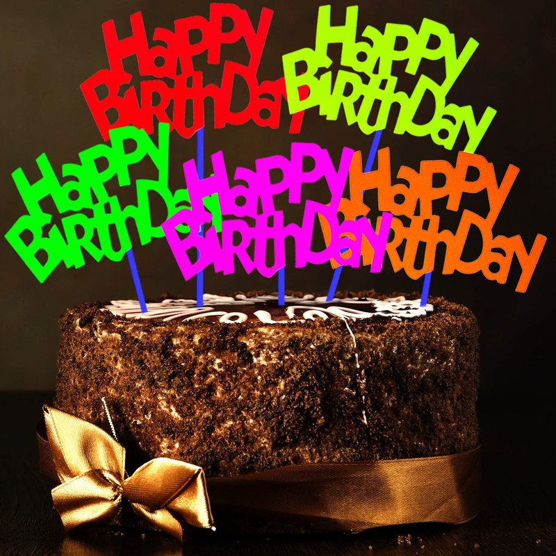 24 Pieces glow neon happy birthday cake toppers for neon birthday party wedding decoration black light reactive party