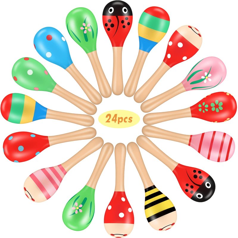 - Moderate Sizes and Assorted Colors: each wooden maracas measures approx. 4.72 x 1.18 inches, suitable size for easy handle; Besides, there are 12 different kinds of styles for you to choose from, colorful and adorable, bringing a lot of fun to your parties