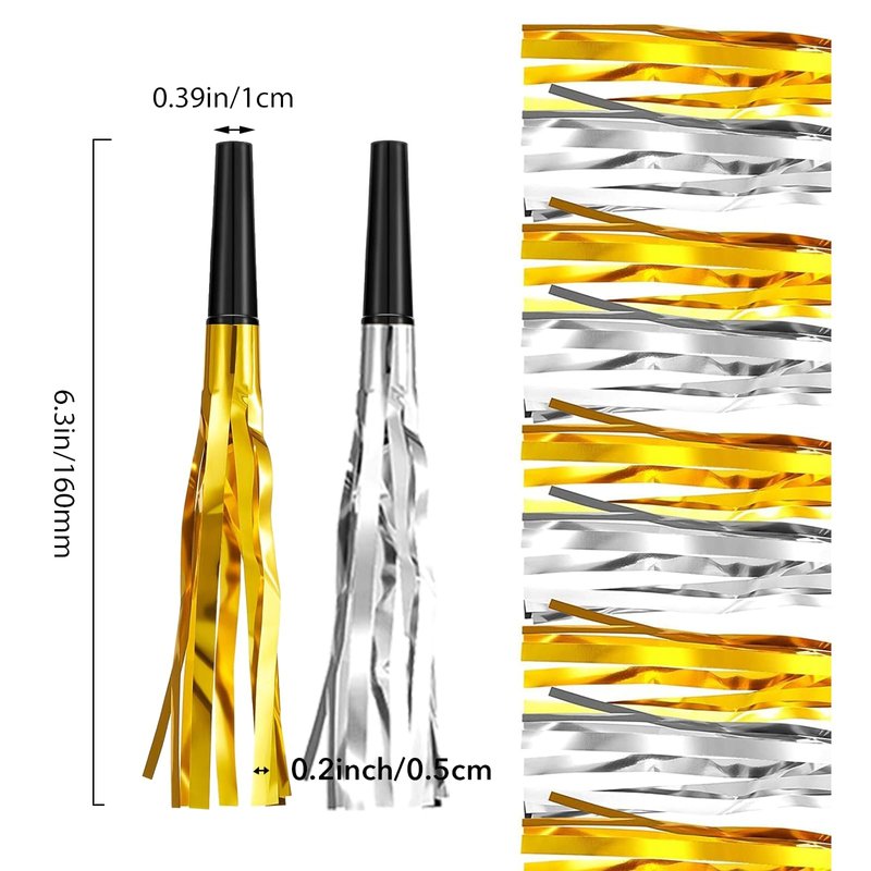 - 【Packaging Included】You will get 24 pieces of new year eve party supplies, including 12 pieces of gold fringed noise makers and 12 pieces of silver fringed noise makers.