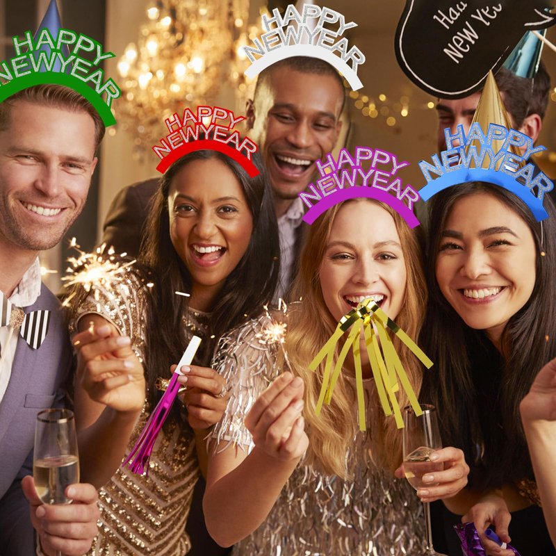 - 【Packaging Included】You will get 24 pieces of new year's eve party supplies, including 12 noisemakers party favors,12 Happy New Year headbands in 6 different colors, each color has 2 pieces.