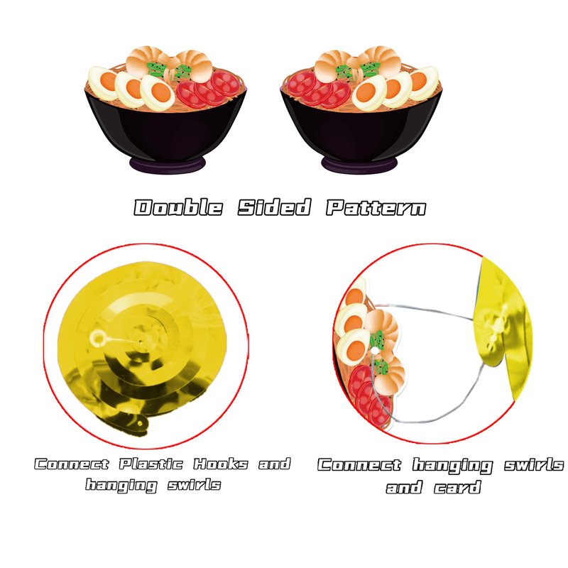 - Premium Quality: Ramen hanging swirl cards are made of premium cardboard, hanging swirls are made of plastic, sturdy, not easy to fold and break, eco-friendly and reusable. It's the perfect choice for ramen theme parties.