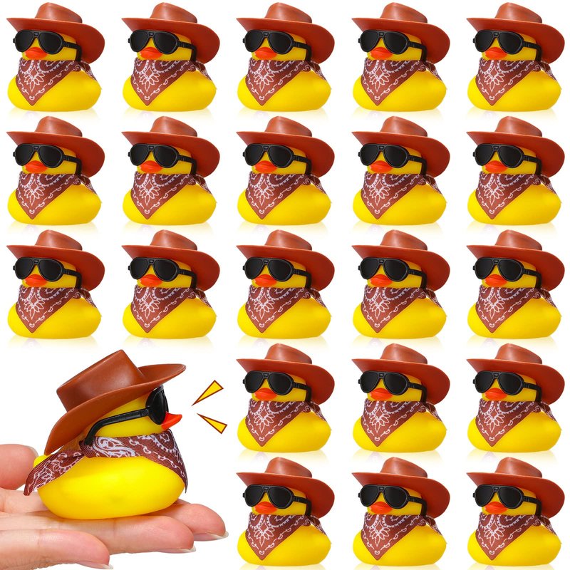24 Set Cowboy Rubber Duck Mini Yellow Duckies Bath Party Toy Tiny Ducks Bathtub Toy with Cowboy Hat Paisley Bandanas Sunglasses for Summer Baby Shower Birthday Swimming Party Favor (Classic Style)