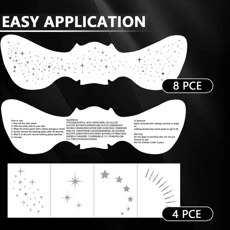 - 𝗘𝗮𝘀𝘆 𝗔𝗽𝗽𝗹𝗶𝗰𝗮𝘁𝗶𝗼𝗻: Our freckle tattoos are super simple to apply, remove the backing by peeling it off, then apply the sticky side to your skin. After that, dampen a towel and apply pressure to the patch for sixty seconds. When the make up patch is finally removed, reveal your gorgeous new glitter speckles. These cute glitter makeup accessories are designed for everyone looking to add a unique twist to their beauty routine.