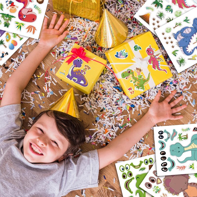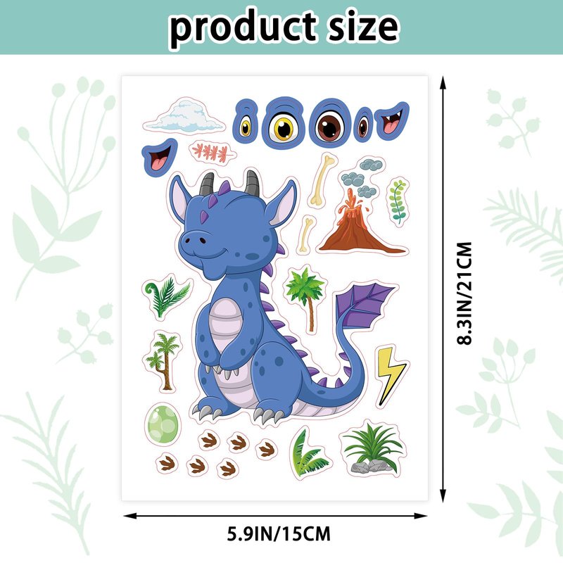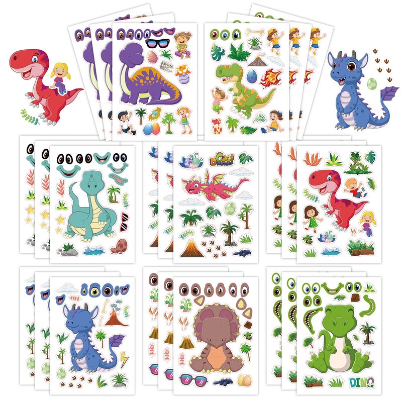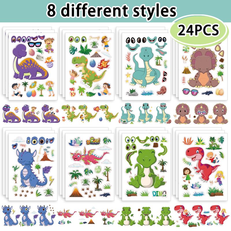 24 Sheets 8.3''×5.9'' Make Your Own Dinosaur Stickers for Toddlers Kids Party Favors, Make a Face Stickers for Kids Activities Supplies Crafts