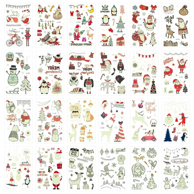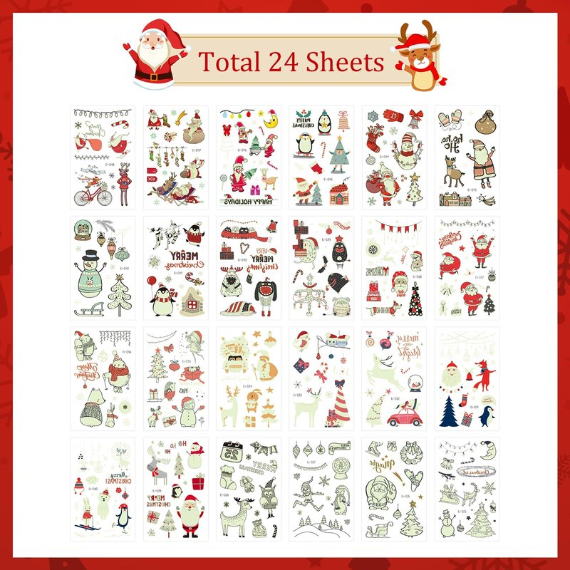 - Package Contents: You will receive 24 sheets of various styles Christmas temporary tattoos, including Santa, reindeer, snowman, Xmas tree, etc. Sufficient quantity and rich styles to meet your decoration needs or share with your family or friends.