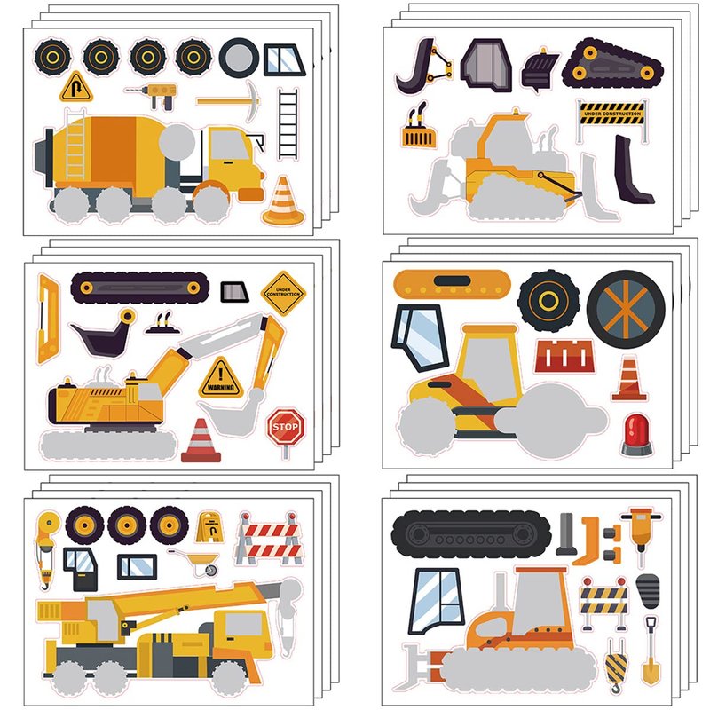 24 sheets Make Your Construction Stickers in 6 different styles. Enjoy creativity and fun to your party celebration for birthday and house Party, group activity, art class or other activities. perfect addition for boys birthday party and construction theme party, this is the perfect party decors for your little builder.